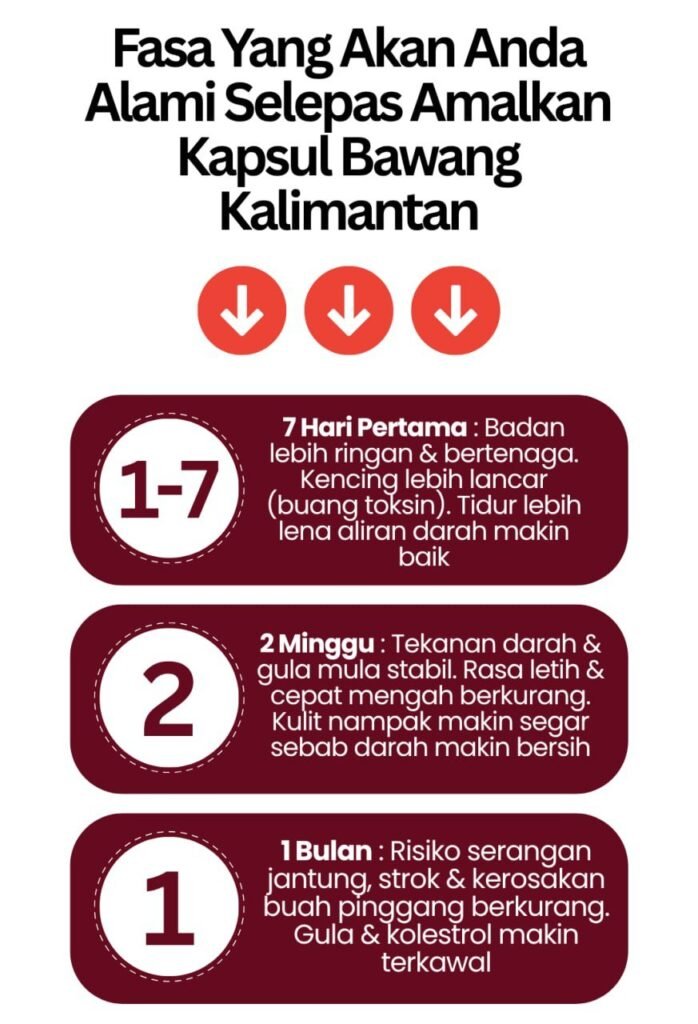 Kesan bergantung pada tahap kesihatan setiap individu. Ada yang rasa perubahan seawal 1–2 minggu, ada juga yang perlukan masa lebih lama untuk nampak kesan. Amalan konsisten sangat penting untuk dapatkan hasil yang terbaik.